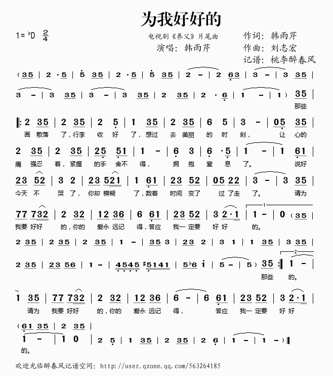 为我好好的 简谱 曲谱 歌谱