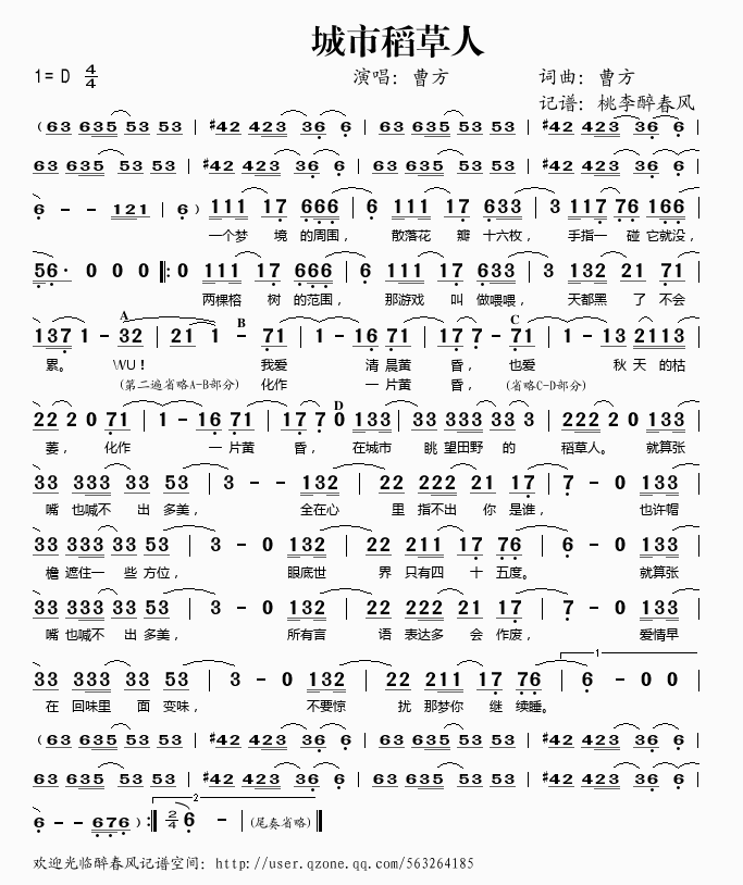 城市稻草人 简谱 曲谱 歌谱