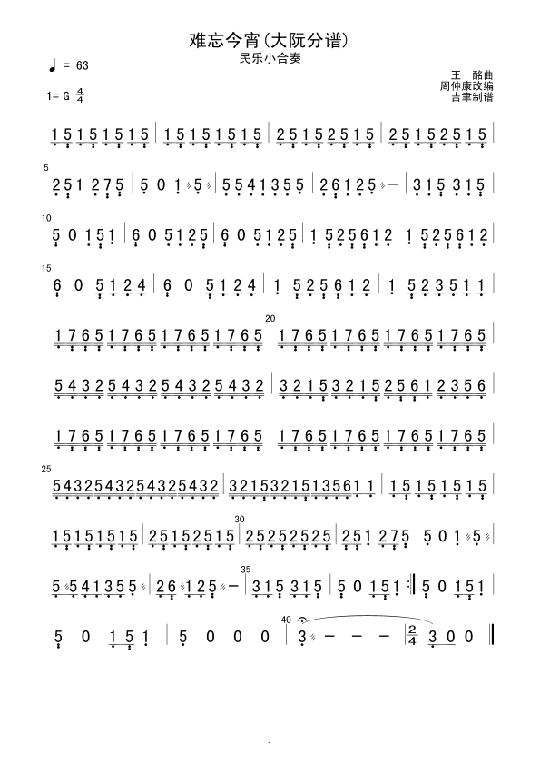 难忘今宵(大阮分谱) 简谱 曲谱 歌谱
