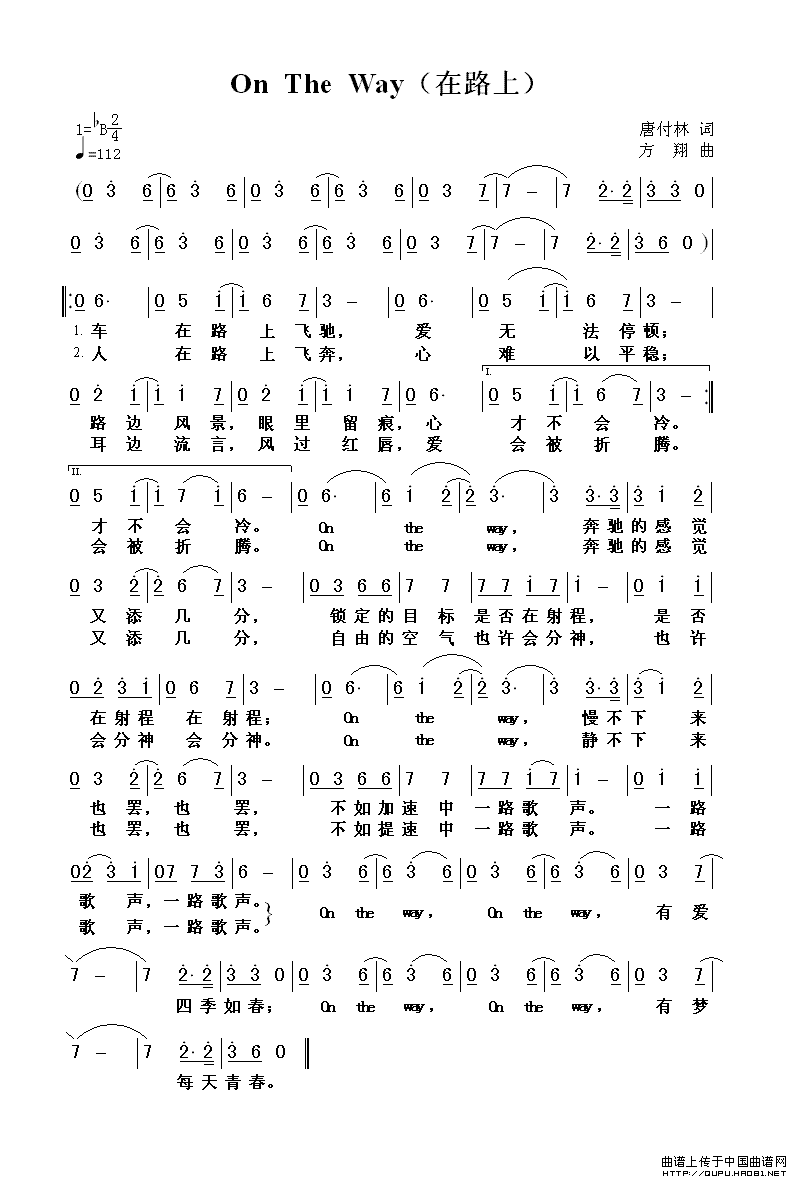 在路上 on the way 简谱 曲谱 歌词