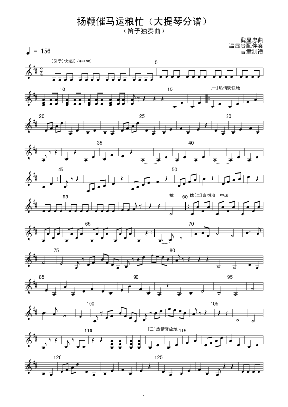 扬鞭催马运粮忙(笛子分谱) 简谱 曲谱