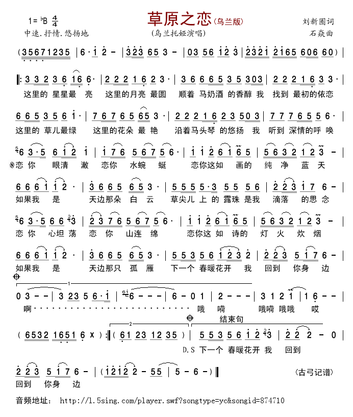 草原之恋(乌兰版) 简谱 曲谱