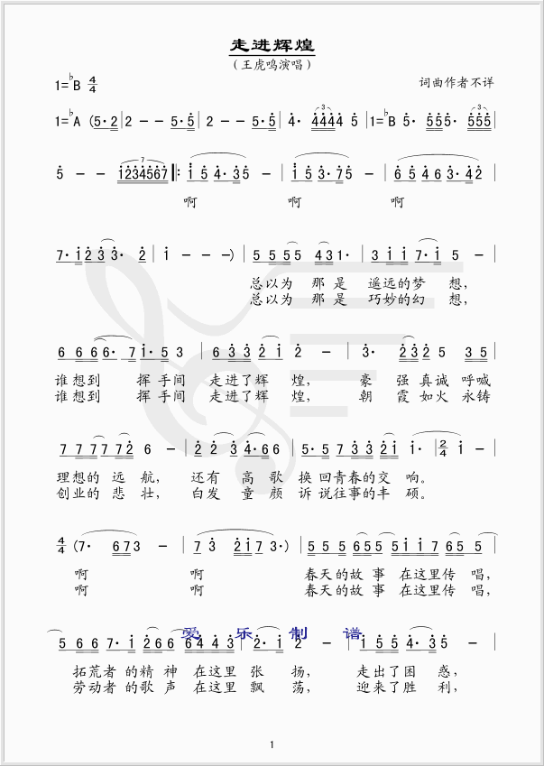 走进辉煌 简谱 曲谱 歌谱