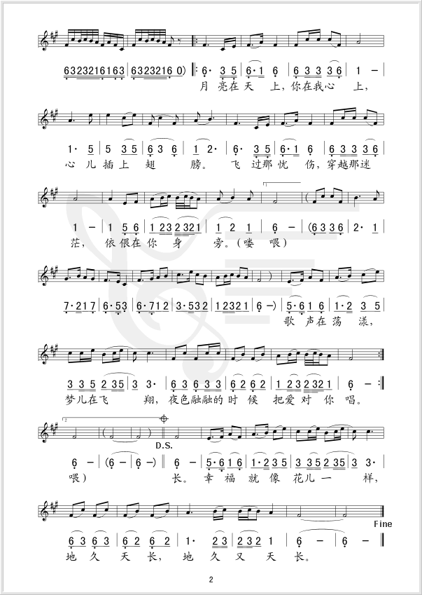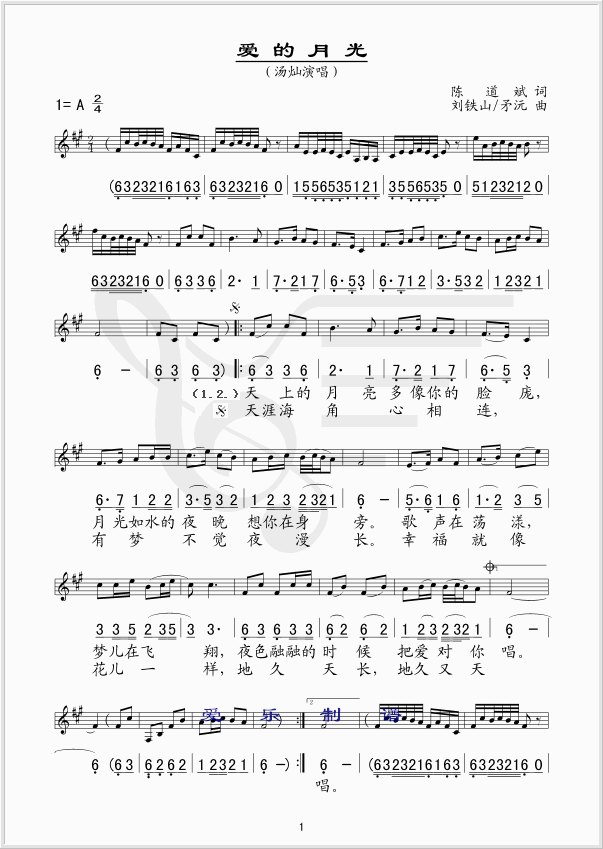 爱的月光 简谱 曲谱 歌谱