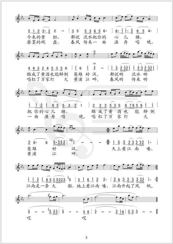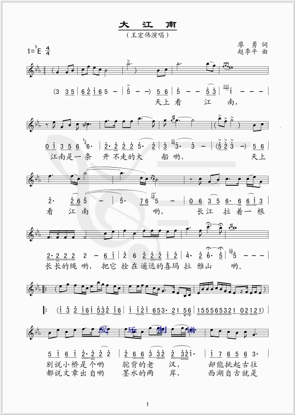 大江南 简谱 曲谱 歌谱