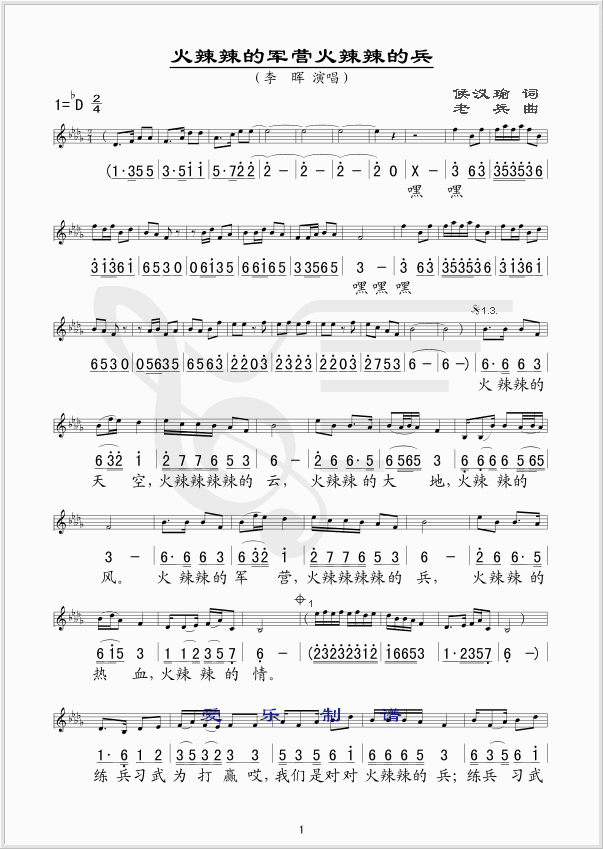 火辣辣的军营火辣辣的兵 简谱 曲谱 歌谱