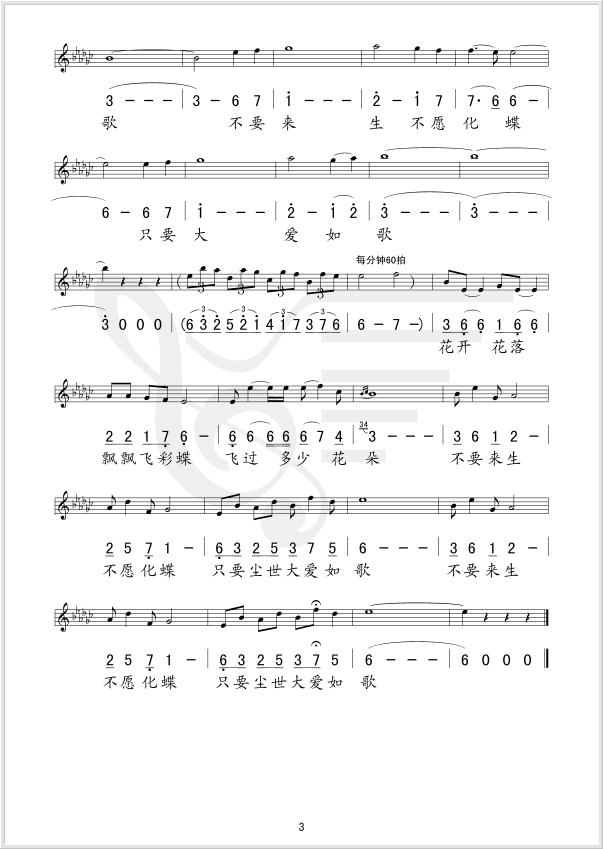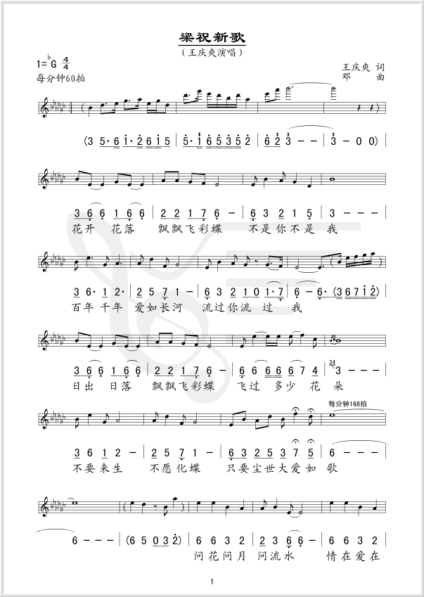 梁祝新歌 简谱 曲谱 歌谱