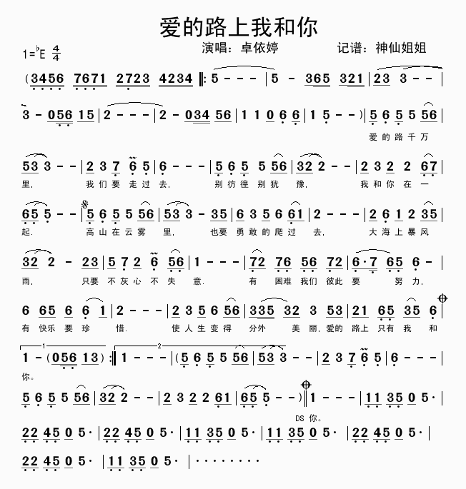 爱的路上我和你 简谱 曲谱 歌谱