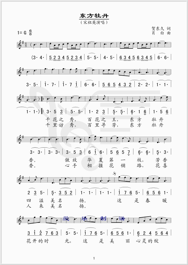 东方牡丹 简谱 曲谱 歌谱