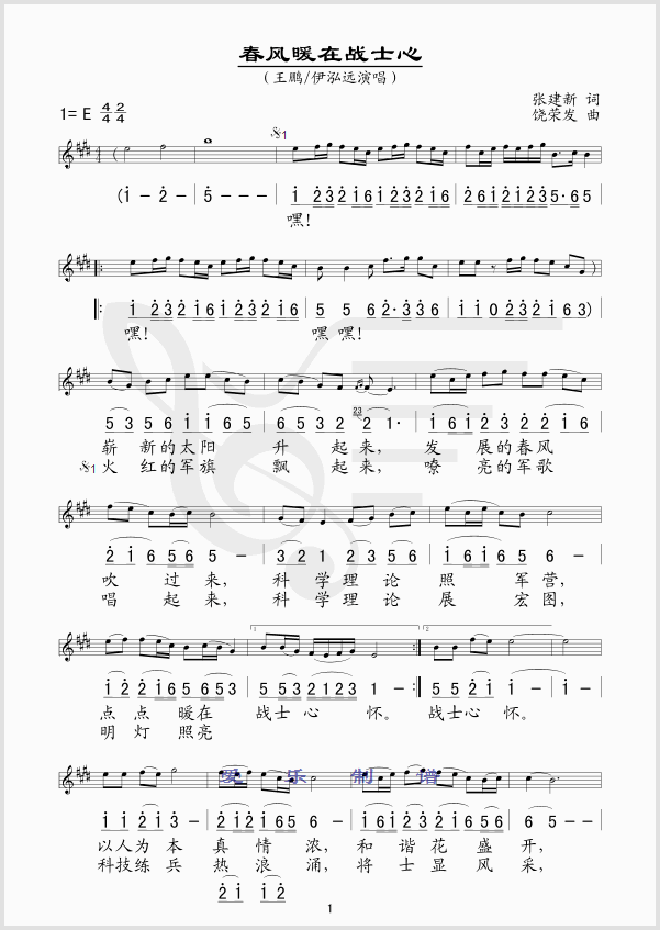 春风暖在战士心 简谱 曲谱 歌谱