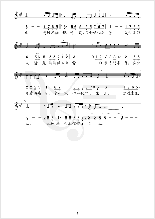 爱过怎能说清楚 简谱 曲谱 歌谱
