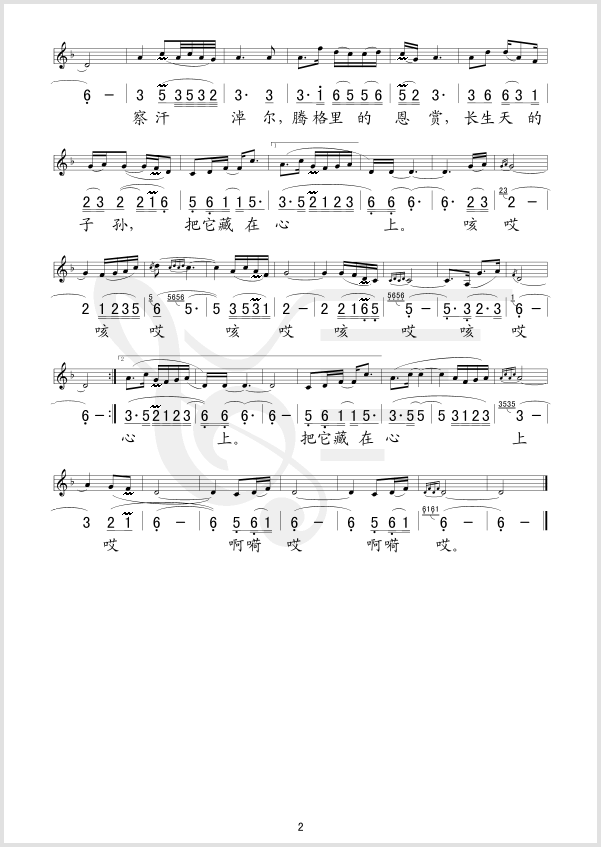 察汗淖尔 简谱 曲谱 歌谱