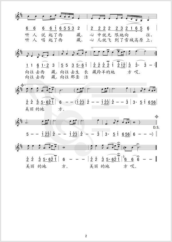 向往西藏 简谱 曲谱 歌谱