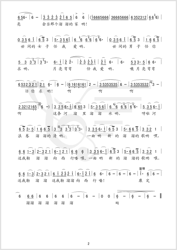 康定溜溜的城 简谱 曲谱 歌谱