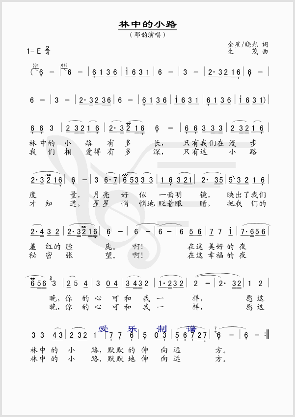 林中的小路 简谱 曲谱 歌谱