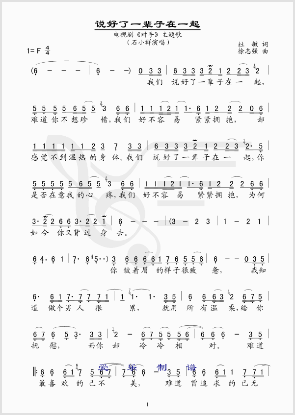 说好了一辈子在一起 简谱 曲谱 歌谱