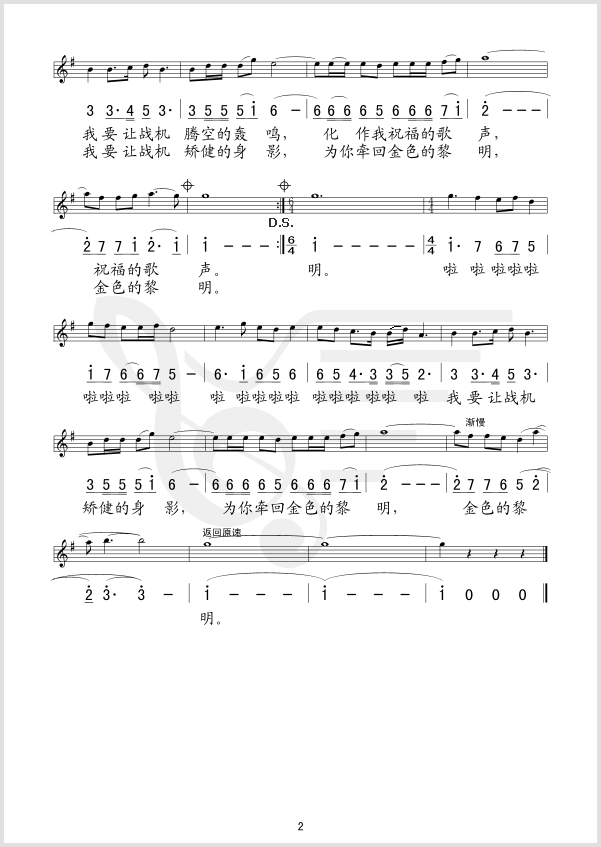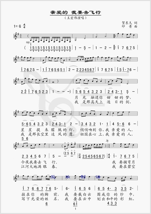 亲爱的我要去飞行 简谱 曲谱 歌谱