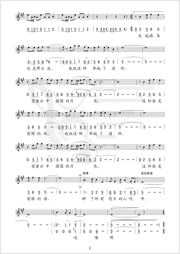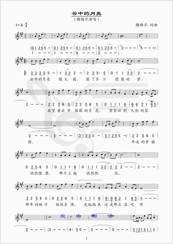 云中的月亮 简谱 曲谱 歌谱