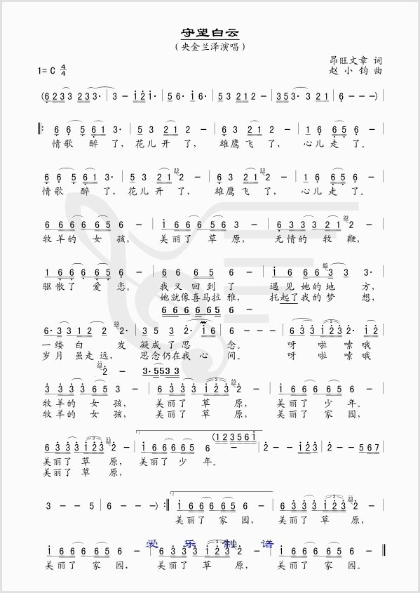 守望白云 简谱 曲谱 歌谱