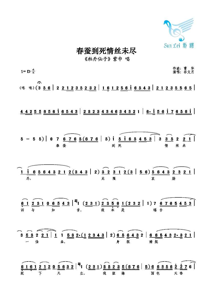 春蚕到死情丝未尽 简谱 曲谱 歌谱
