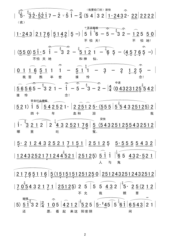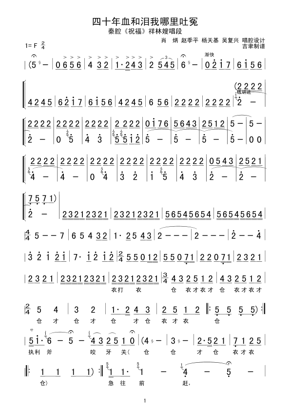 四十年血和泪我哪里吐冤 简谱 曲谱