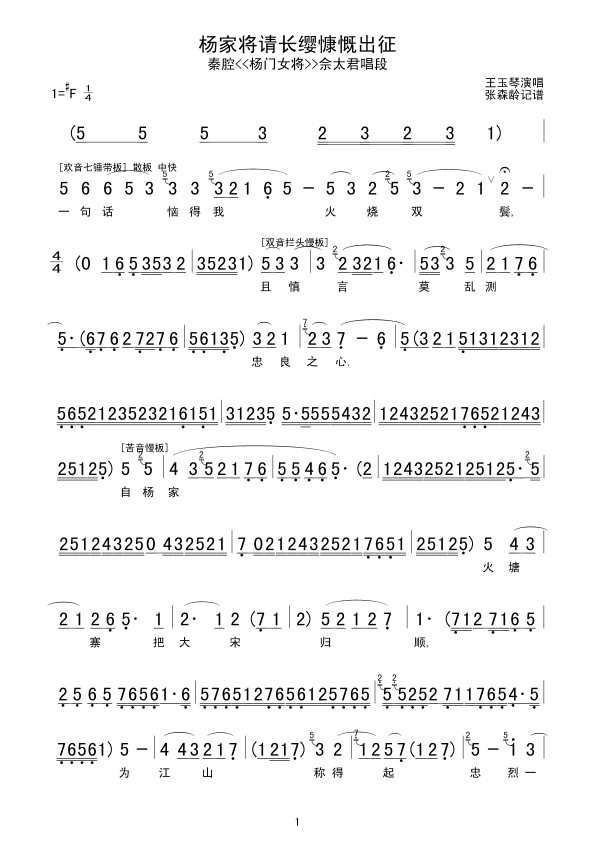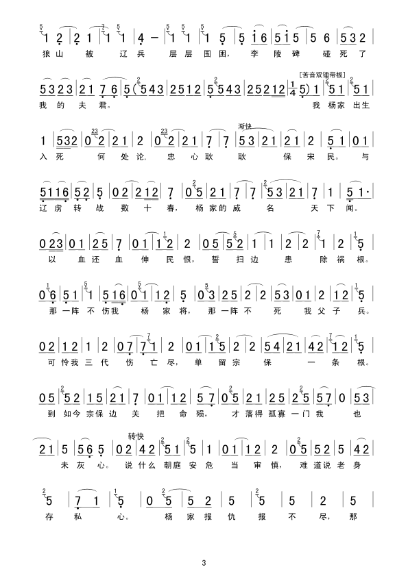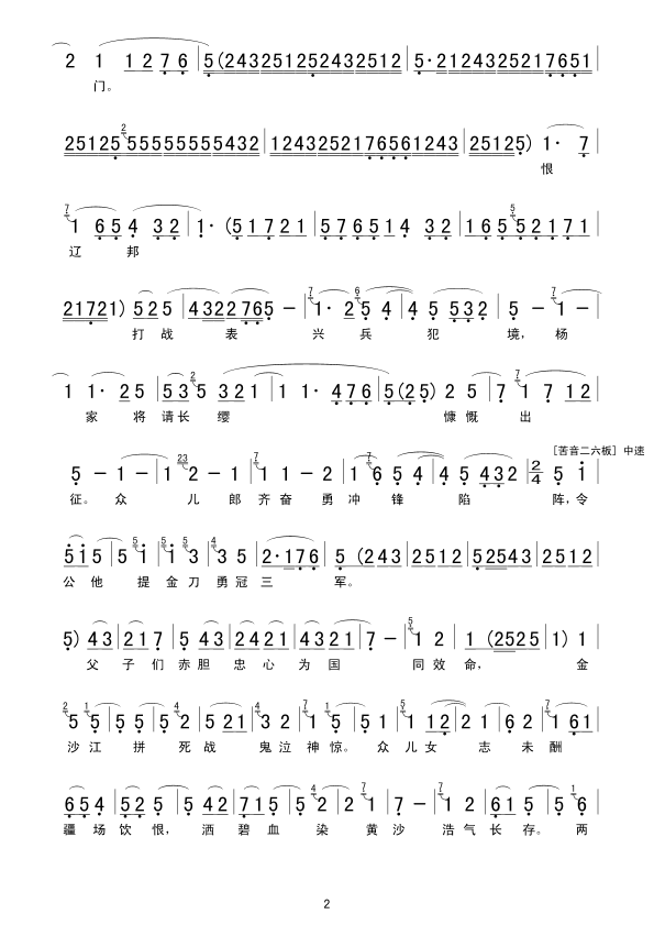 杨家将请长缨慷慨出征 简谱 曲谱