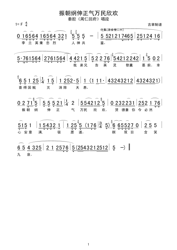 振朝纲伸正气万民欣欢 简谱 曲谱