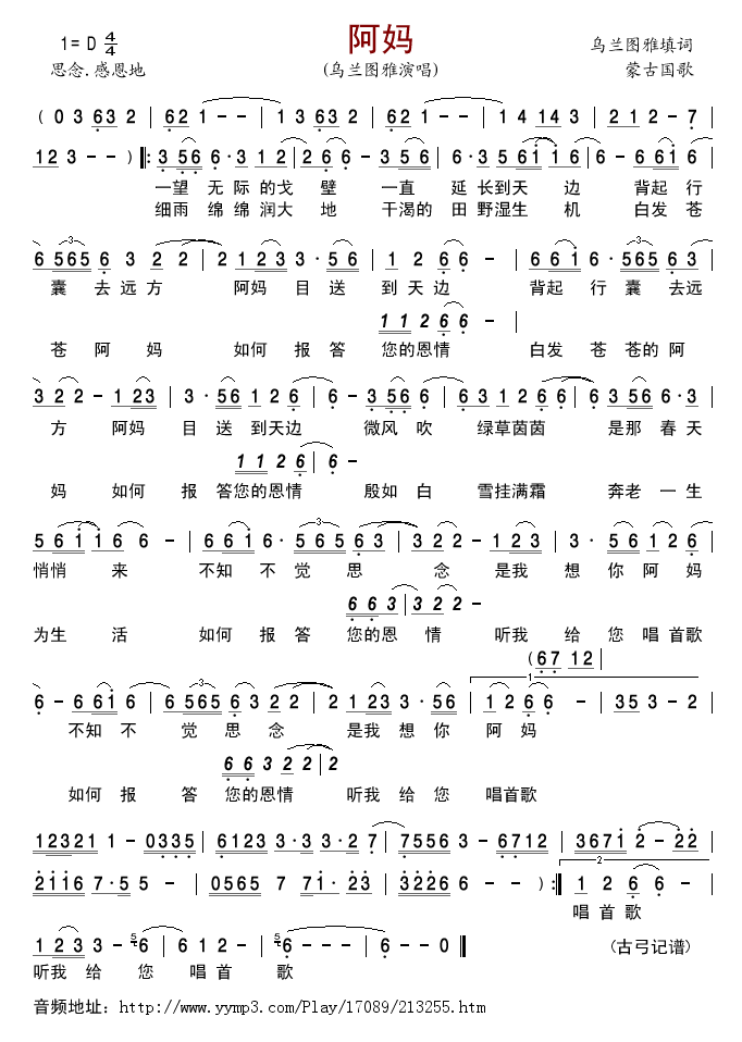 阿妈 简谱 曲谱