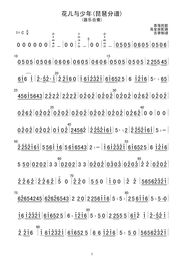花儿与少年(琵琶分谱) 简谱 曲谱
