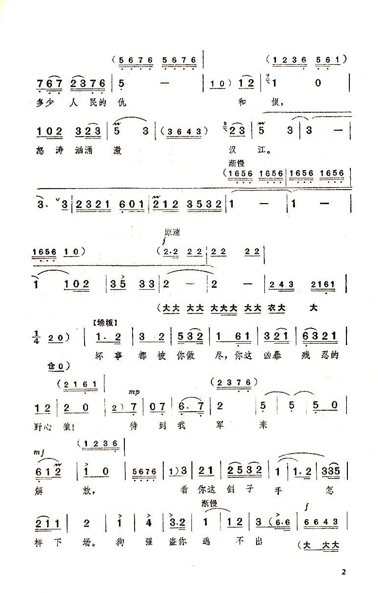 怒涛汹涌激汉江 简谱 曲谱