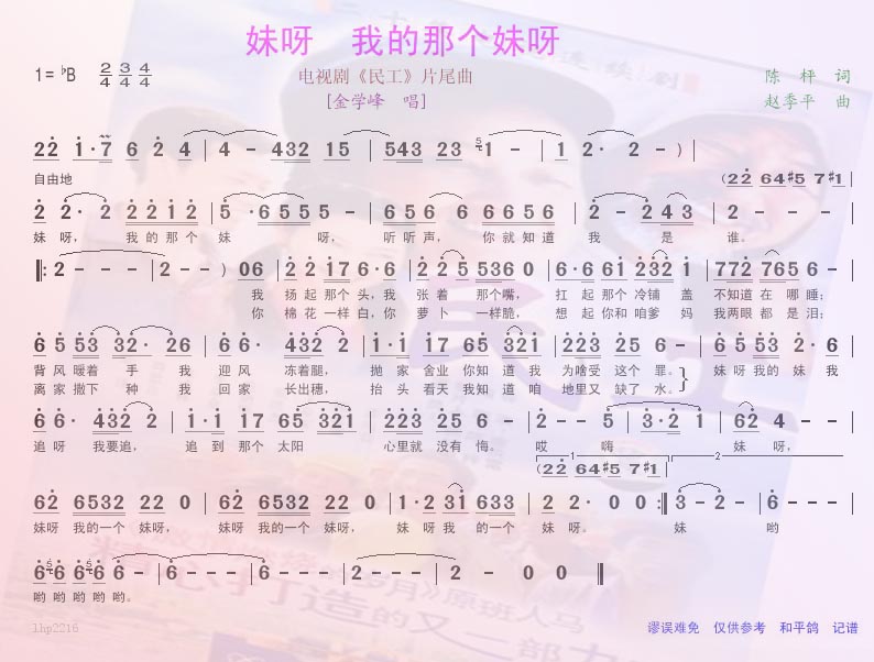 妹呀,我的那个妹呀 简谱 曲谱