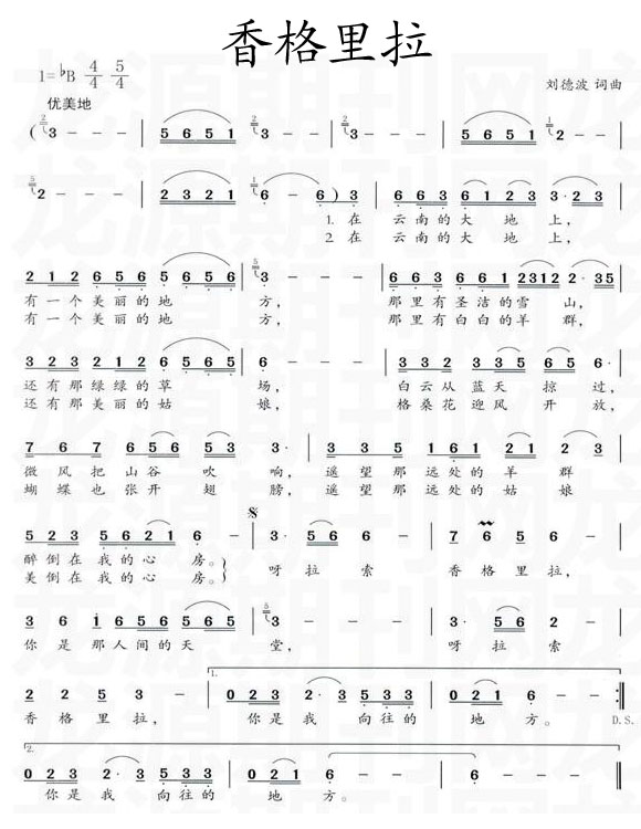香格里拉 简谱 曲谱