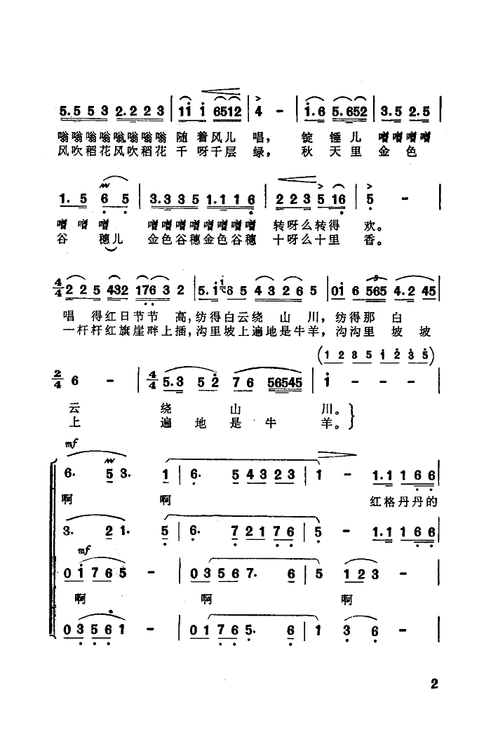 清格朗朗的延河水 简谱 曲谱