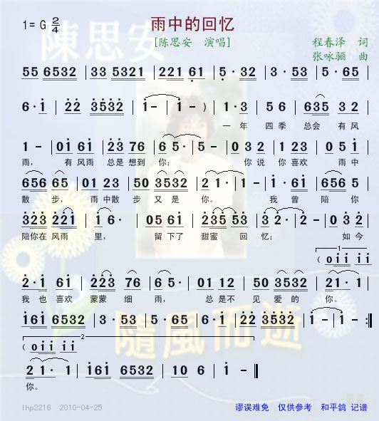 雨中的回忆 简谱 曲谱