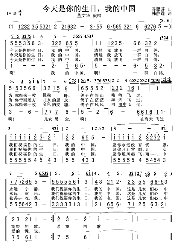 今天是你的生日 简谱