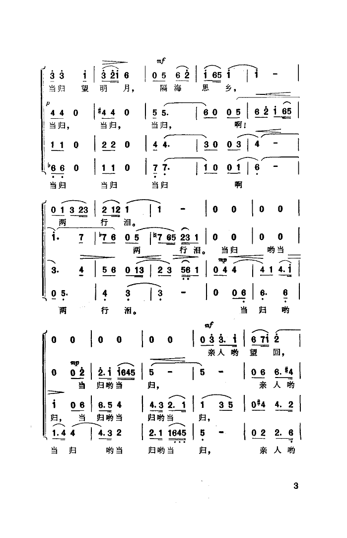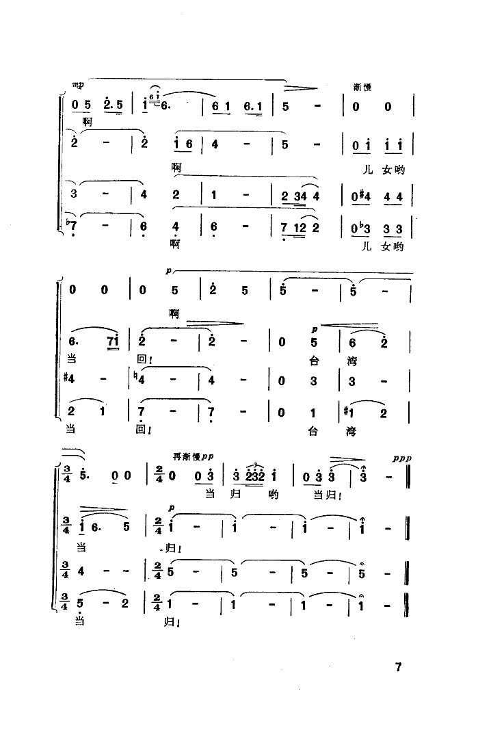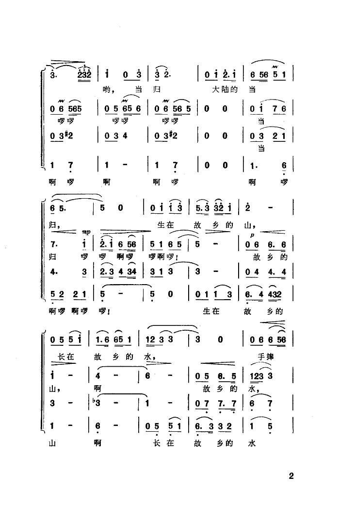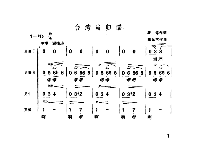 台湾当归谣 简谱 曲谱