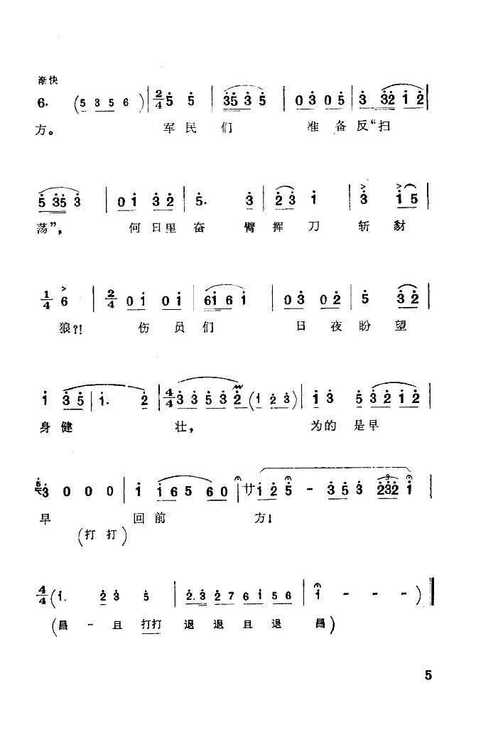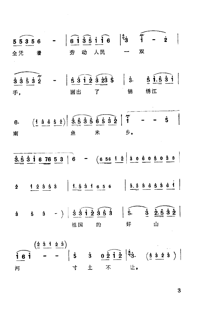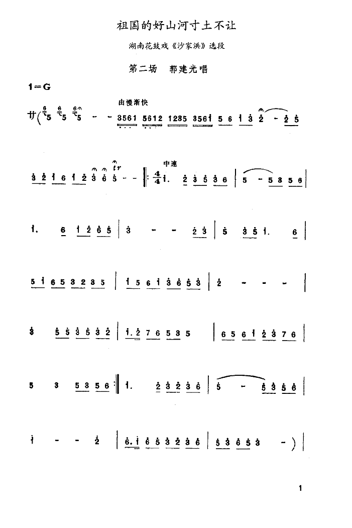 祖国的好山河寸土不让(湖南花鼓戏) 简谱 曲谱