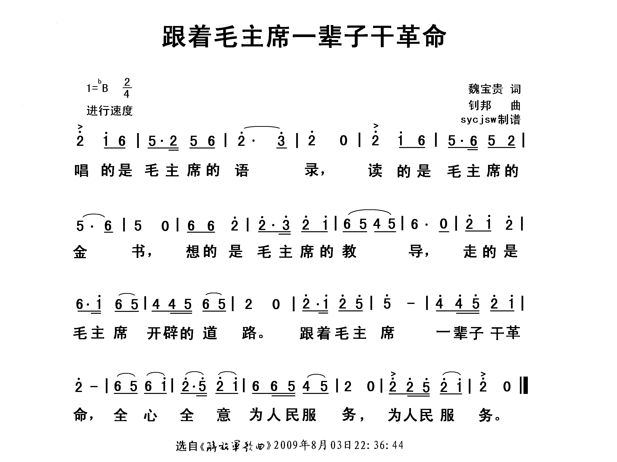 跟着毛主席一辈子干革命 简谱 曲谱