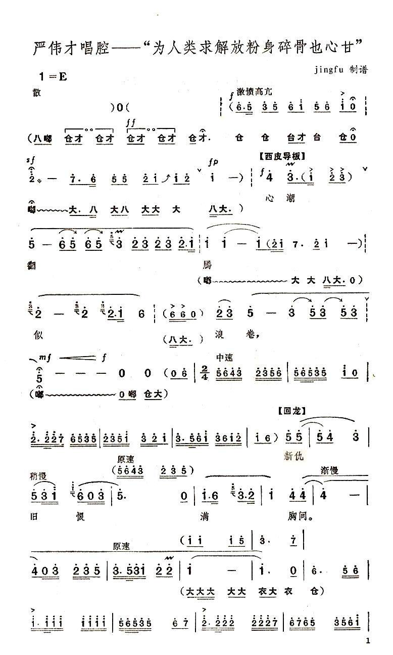 为人类求解放粉身碎骨也心甘 简谱 曲谱