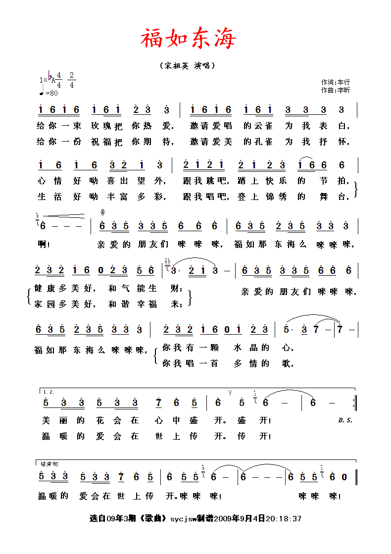 福如东海 简谱 曲谱