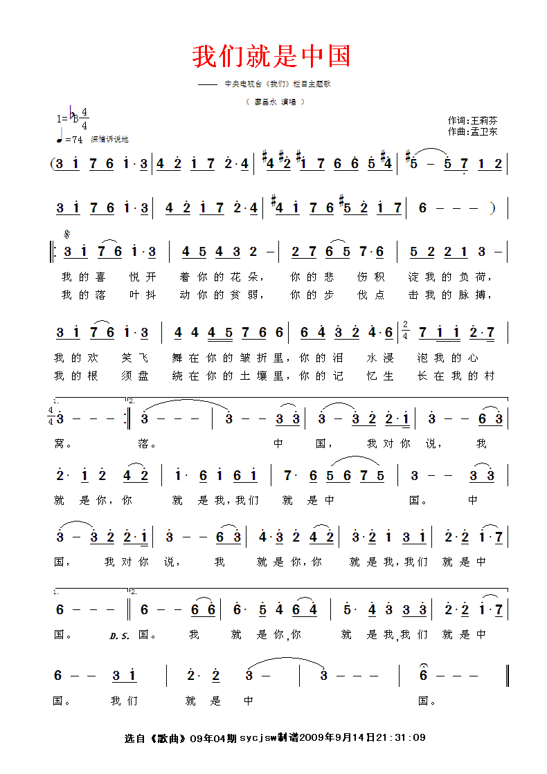 我们就是中国 简谱 曲谱