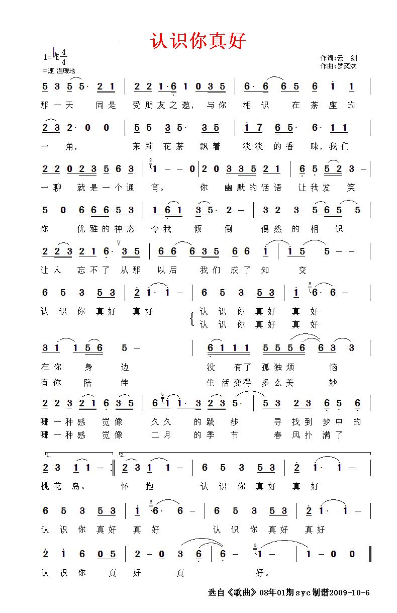认识你真好 简谱 曲谱