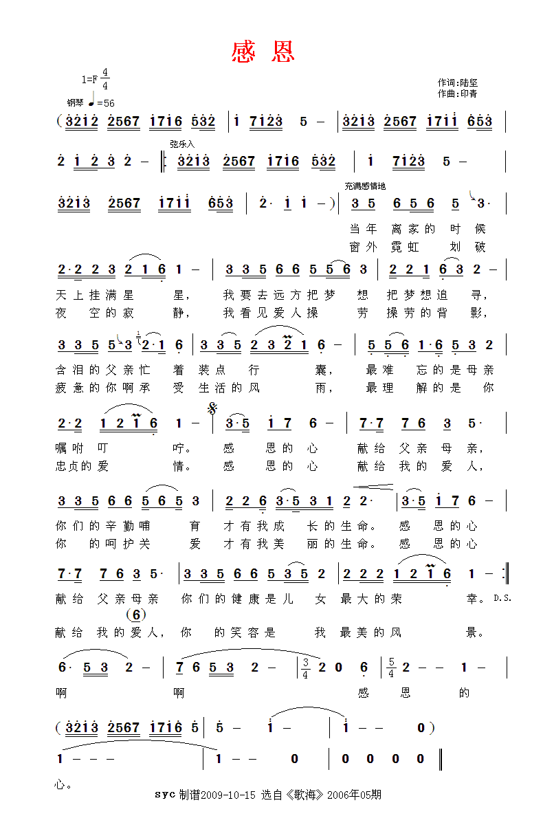 感恩 简谱 曲谱