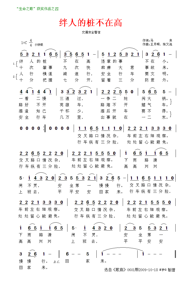 绊人的桩不在高 简谱 曲谱
