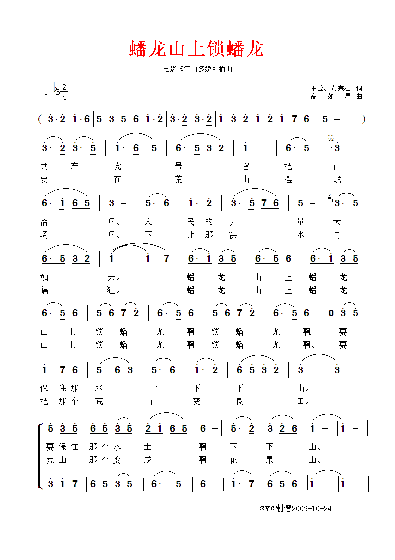 蟠龙山上锁蟠龙 简谱 曲谱