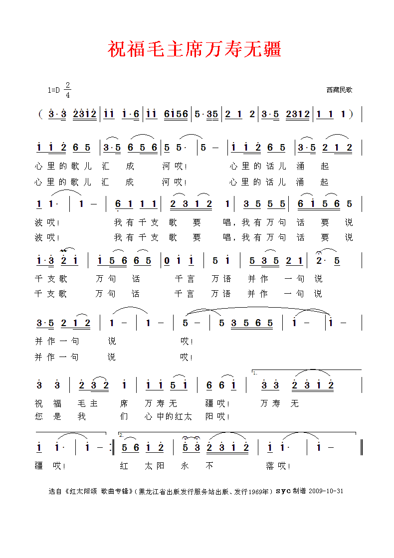 祝福毛主席万寿无疆 简谱 曲谱
