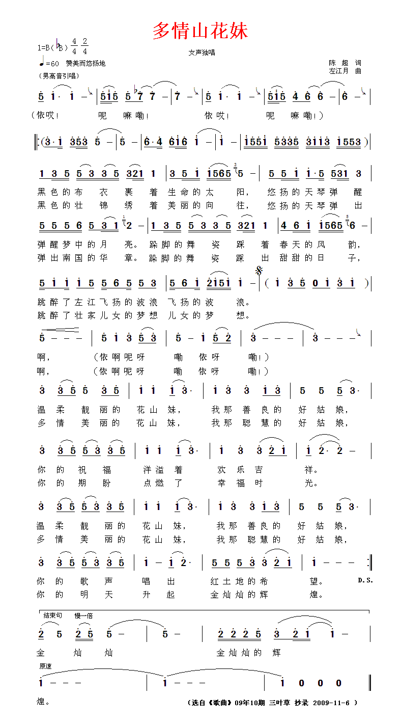 多情花山妹 简谱 曲谱