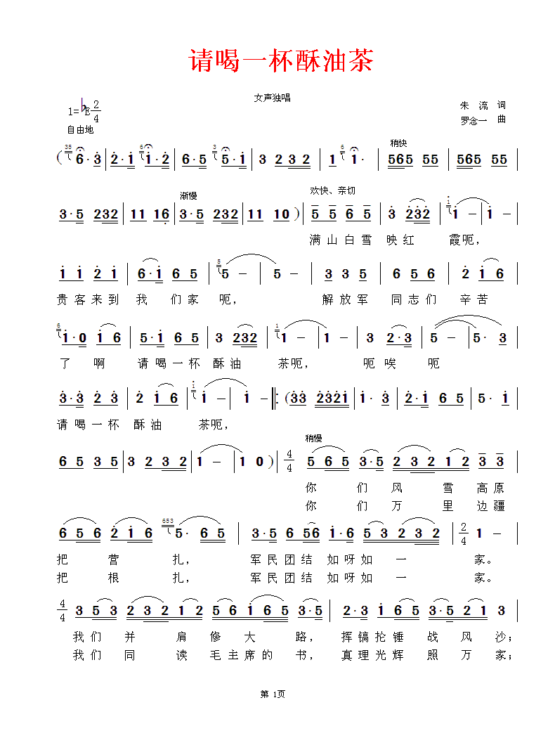 请喝一杯酥油茶 简谱 曲谱