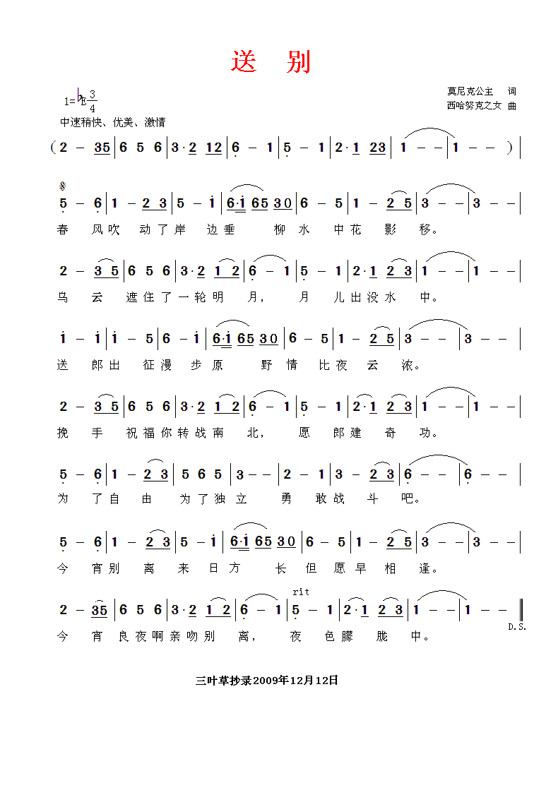 送别 简谱 曲谱