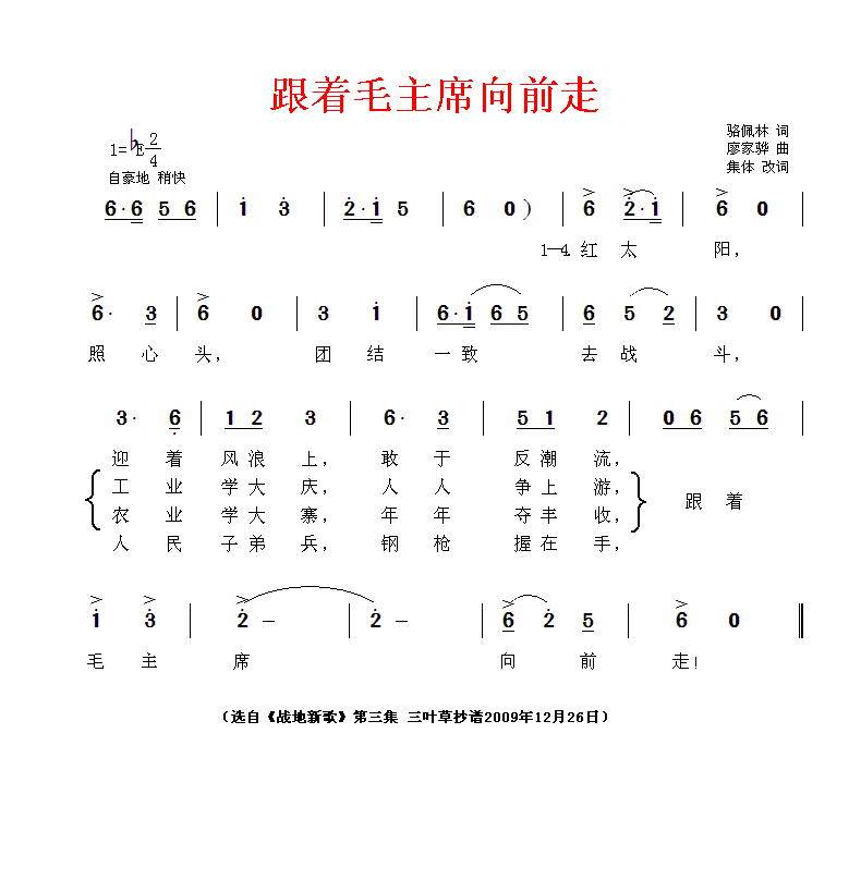 跟着毛主席向前走 简谱 曲谱